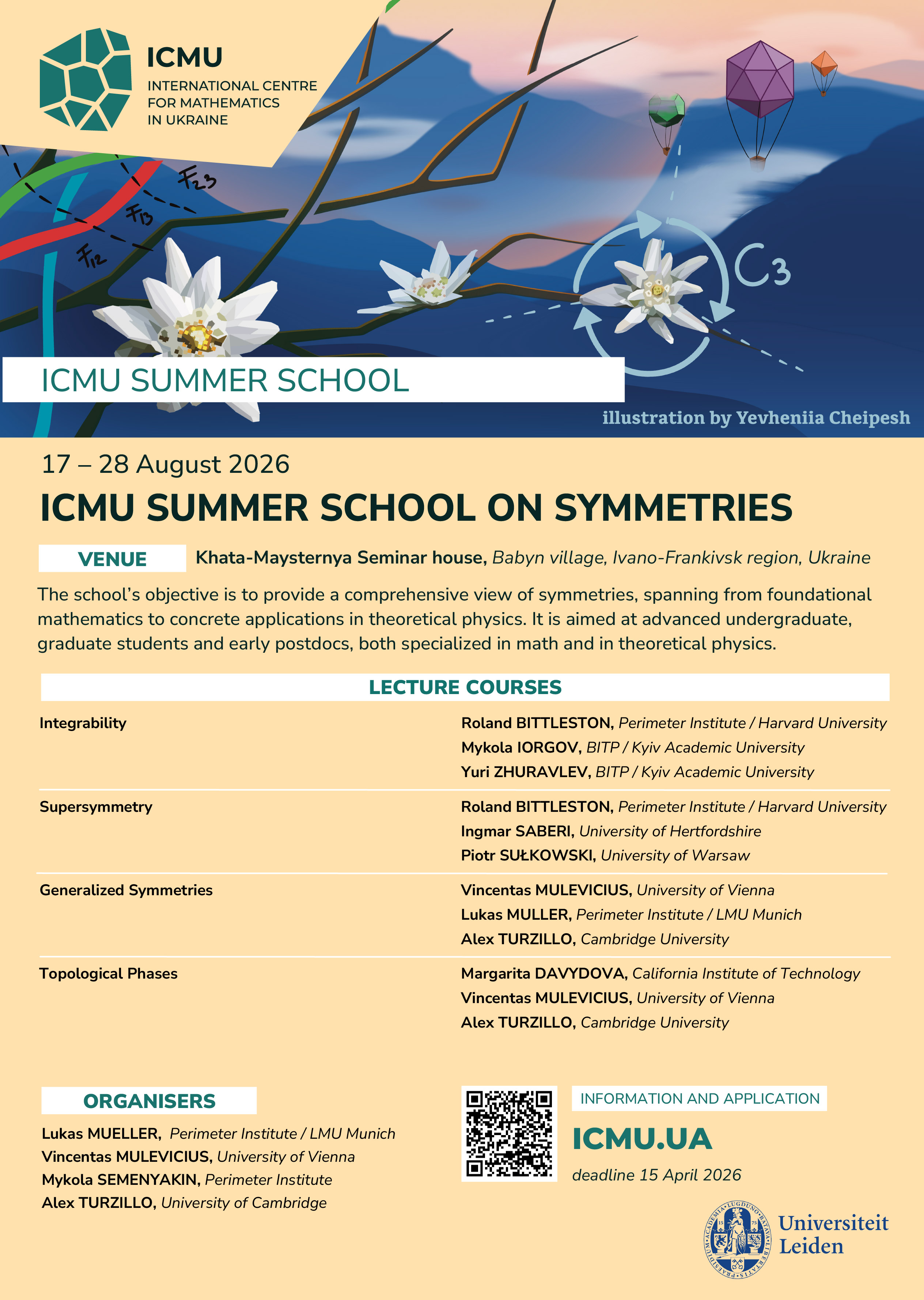 Літня школа пропонує учасникам широкий вступ до теми симетрій, знайомство із математичними структурами, що лежать в їх основі та їх застосуваннями як у математиці, так і в теоретичній фізиці.